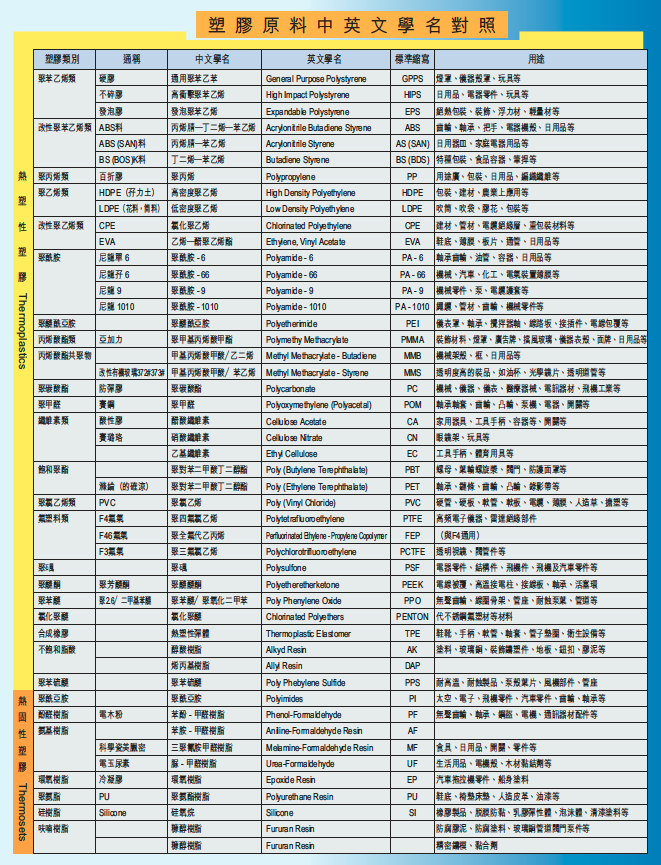 - 質輕丶強度中等丶耐水性丶耐藥品性丶耐熱性丶電氣性